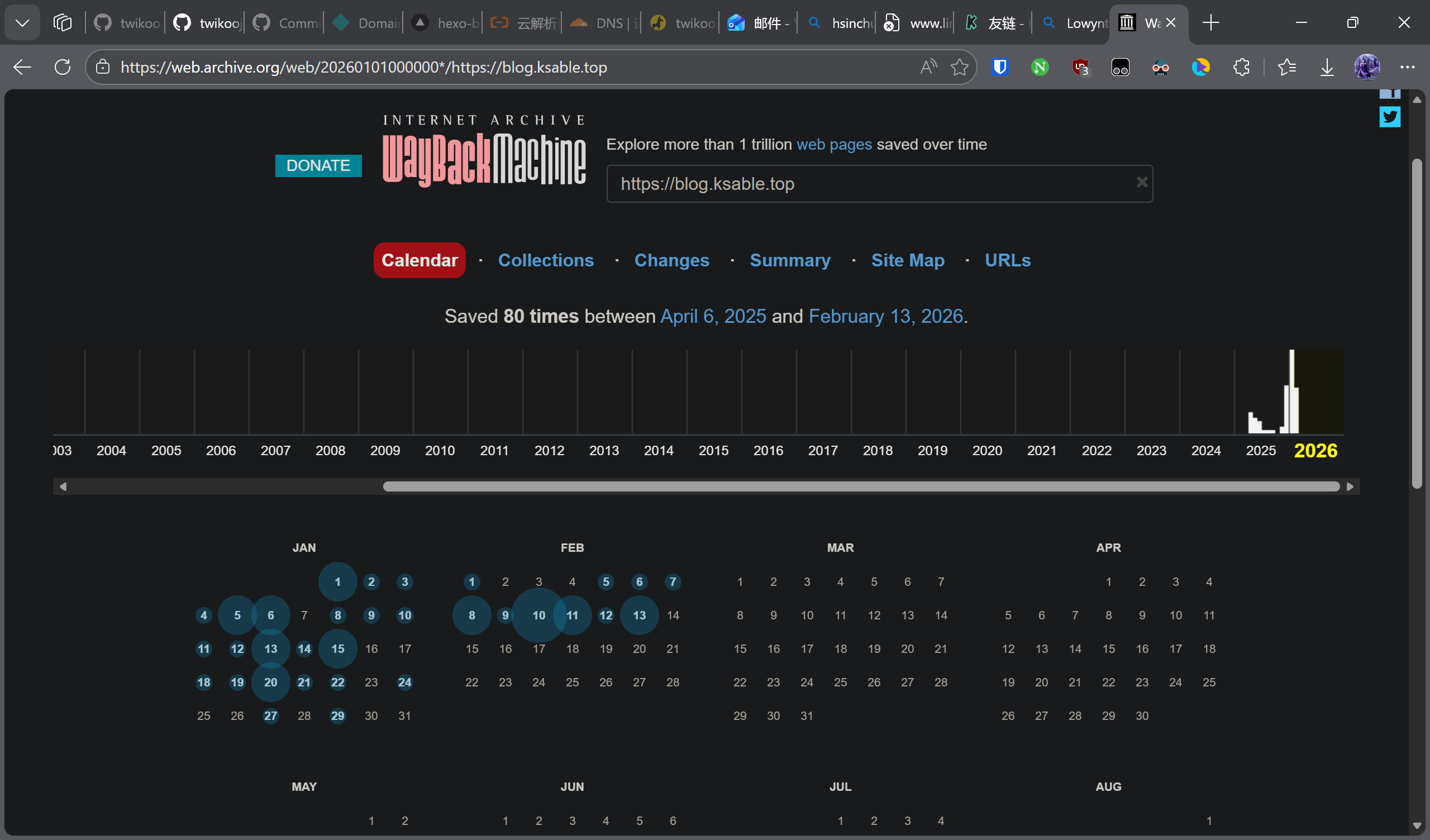 刚打开 Internet Archive,发现已经收录了我网站超多快照,尤其是这两个月,几乎天天都在抓取我博客的快照,到现在已经连续抓取9天了。